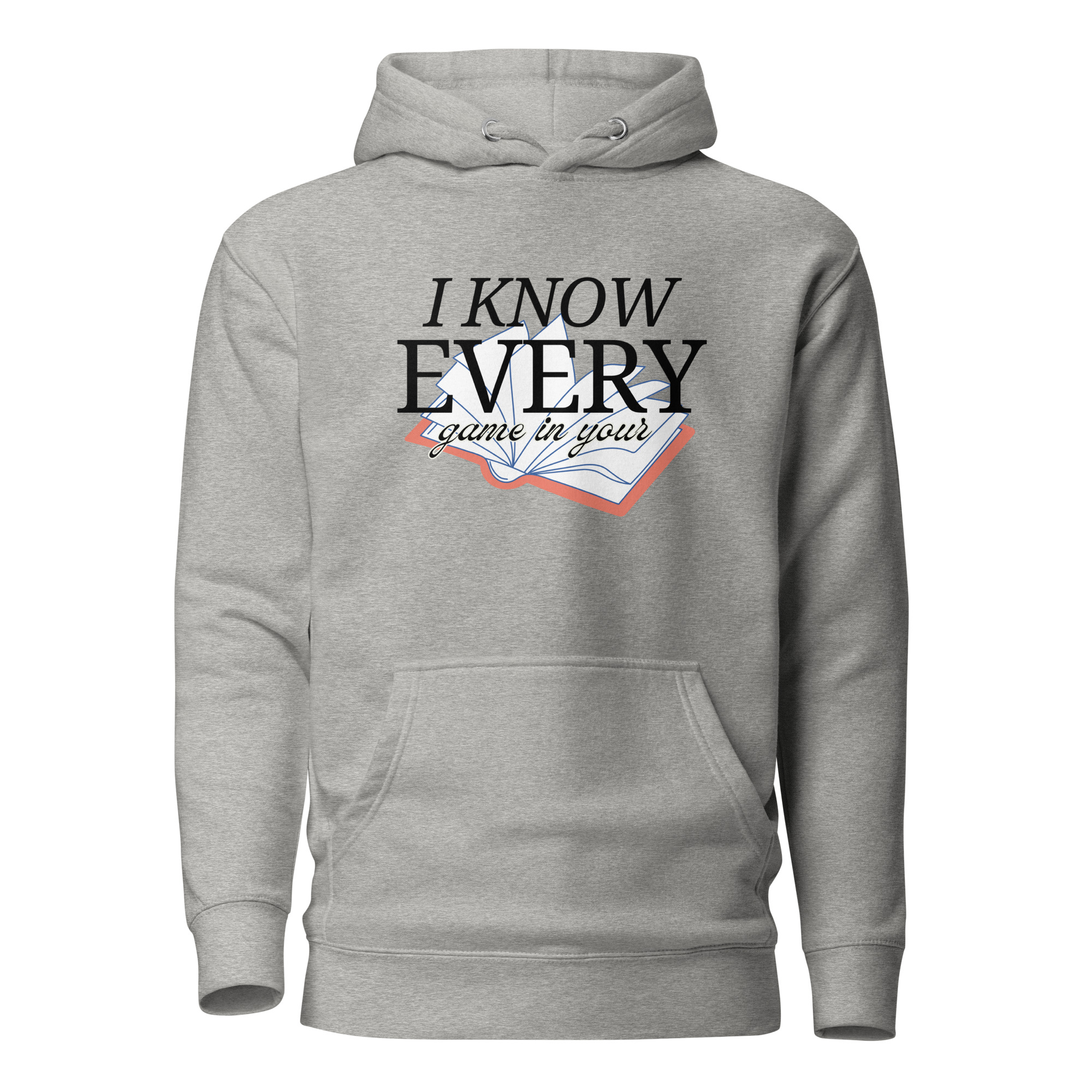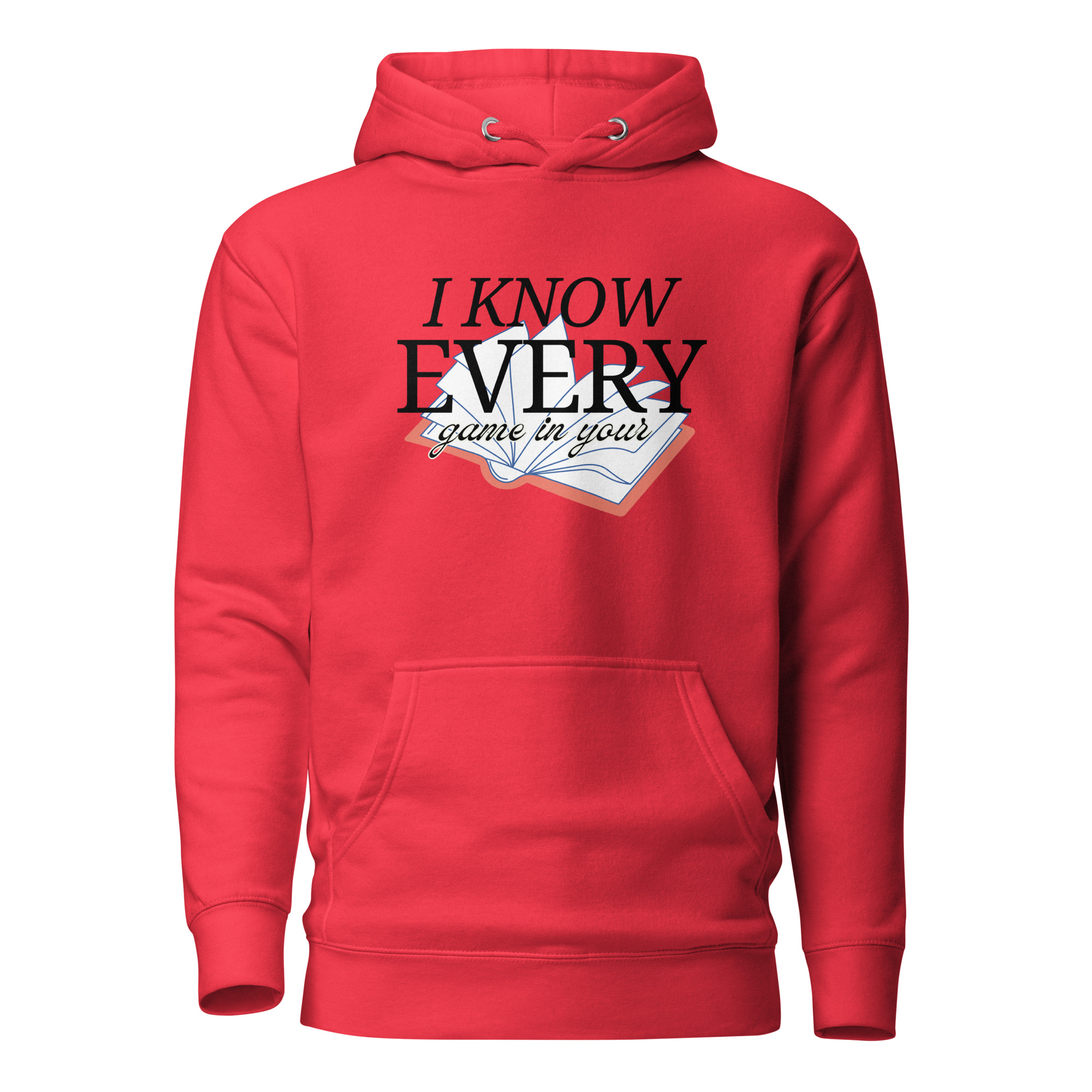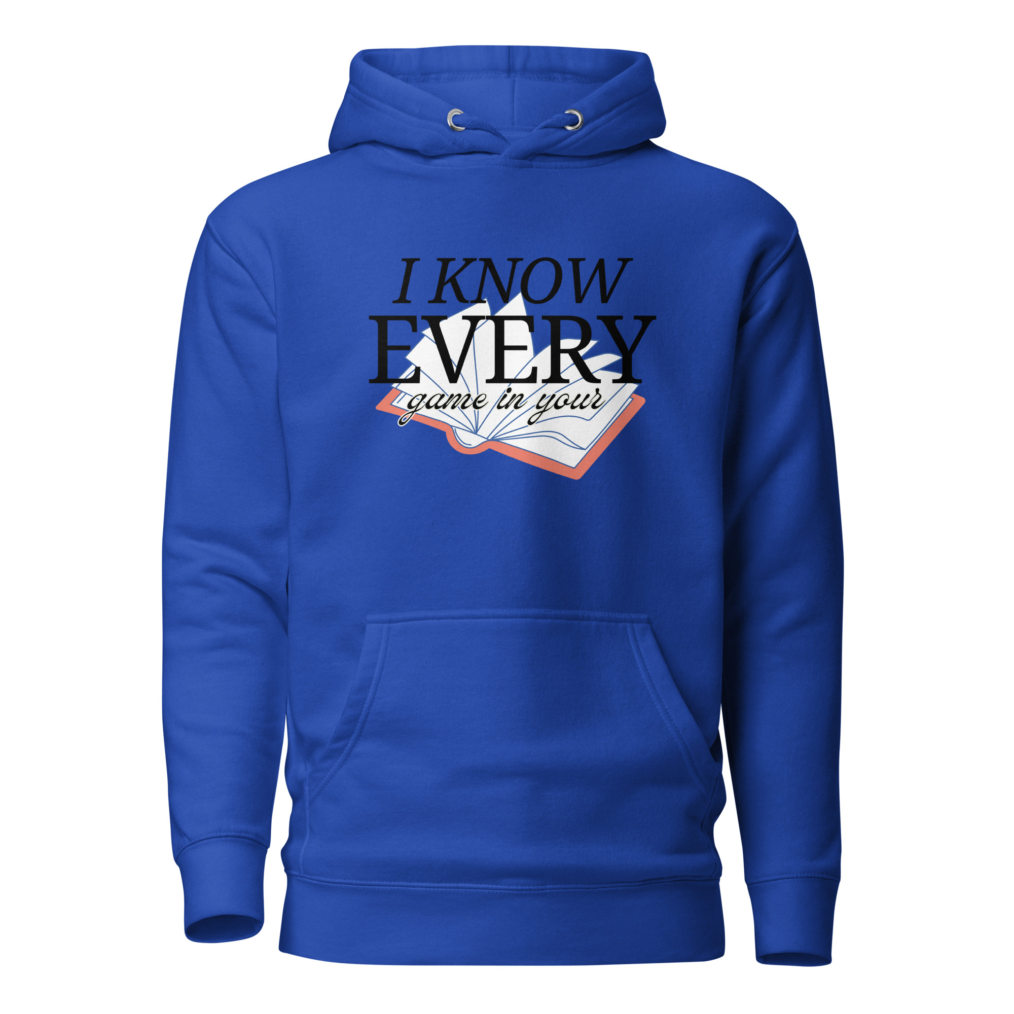 The bold & playful “I Know Every Game in Your Book” unisex hoodie perfect blend of comfort and attitude. Made from high-quality, soft fabric, hoodie designed for cooling at home, running errands, or making a bold statement out in the world. I Know Every Game in Your Book t shirt will be made especially for you as soon as you place an order, which is why it takes us a bit longer to deliver it to you.